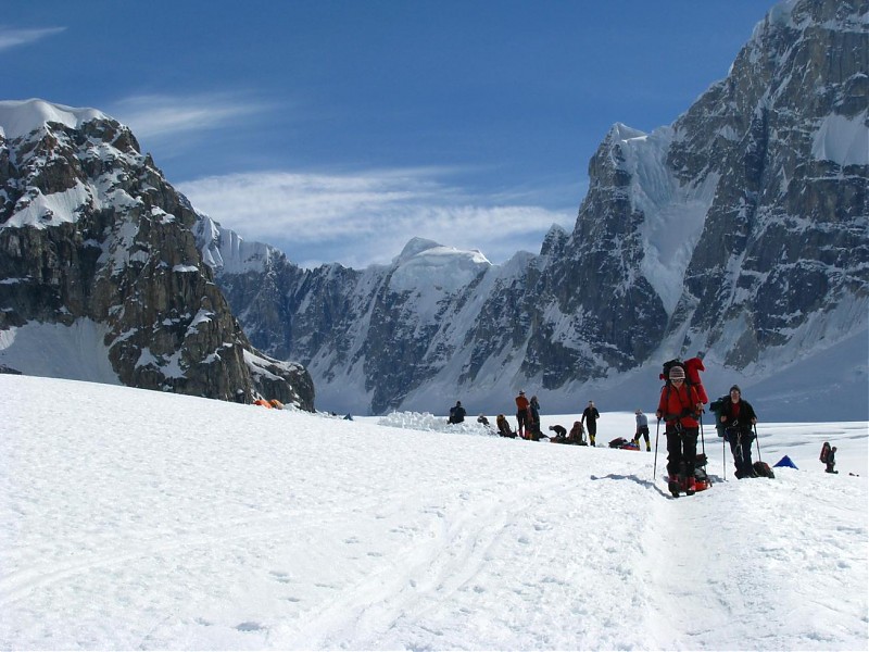 Temperatura w namiotach ok -10 stopni Celsjusza. Idziemy dzis na Kahiltna Pass na 2900m. Pogoda sloneczna. Dosc spora liczba alpinistow bo pojawilo sie "okno pogodowe" i trzeba to wykorzystac. Przemek z zawodu nauczyciel buduje dwupietrowy apartament z blokow lodowych:) pomylka w dobraniu zawodu, apartament wyszedl pierwsza klasa:)